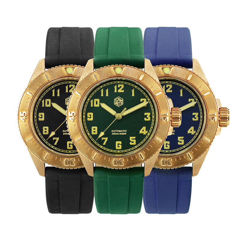 ที่กําหนดเองที่เรียบง่ายวินเทจบรอนซ์ Aqua Ghost นาฬิกาดําน้ําอัตโนมัตินาฬิกากีฬาผู้ชายนาฬิกา