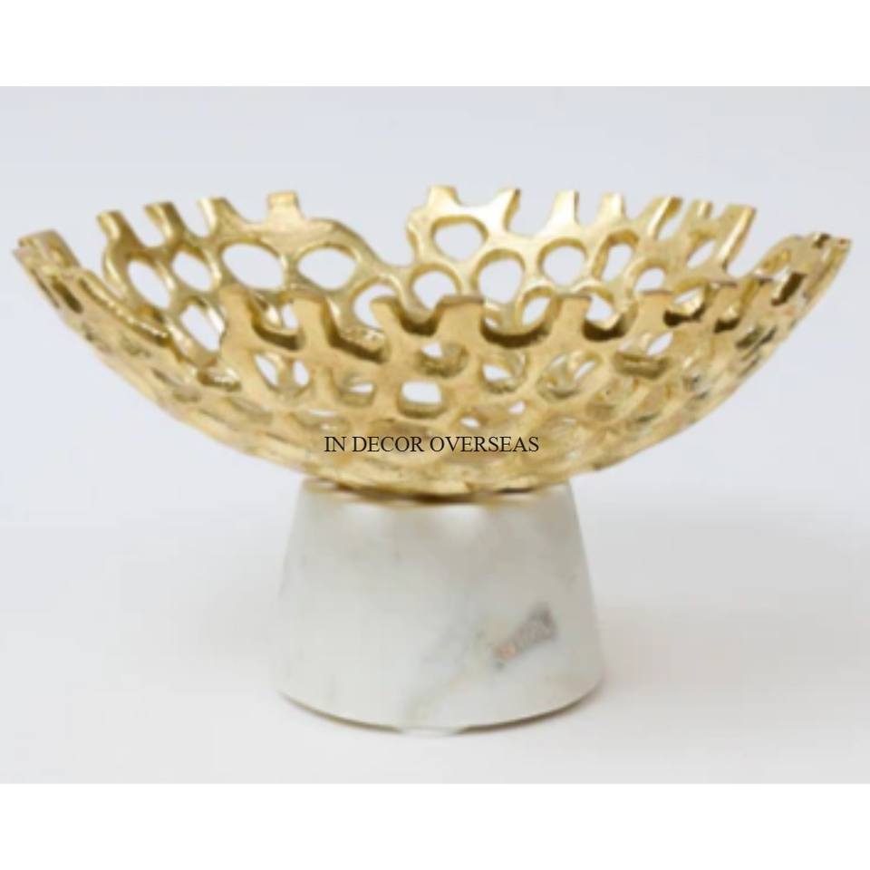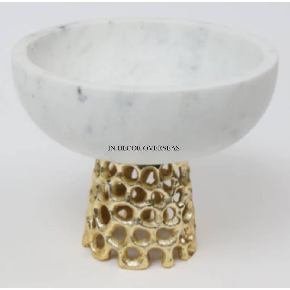 ชามเสิร์ฟและตกแต่งโลหะที่มีฐานหินอ่อนสีขาวขนาดและโลโก้ออกแบบได้ตามที่ต้องการ