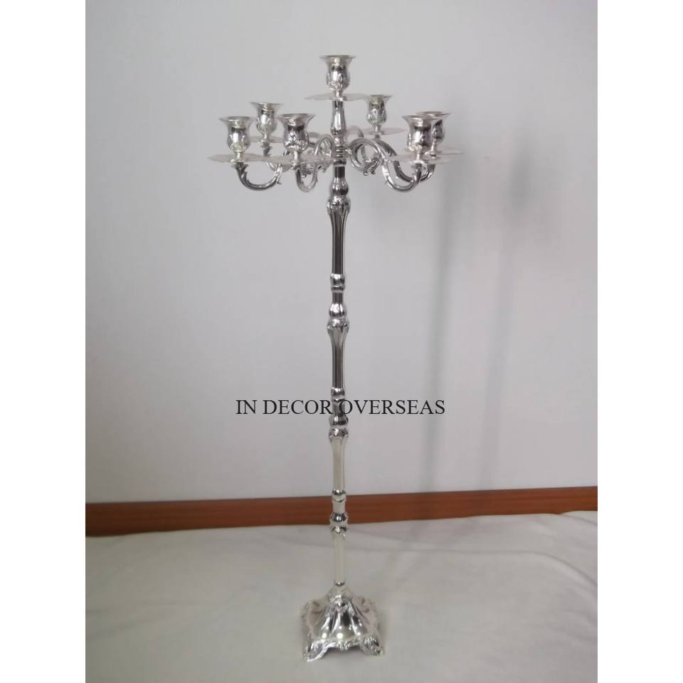 เชิงเทียนโลหะเคลือบเงาสีเงินสำหรับงานแต่งงานขนาดและโลโก้ออกแบบได้ตามต้องการ