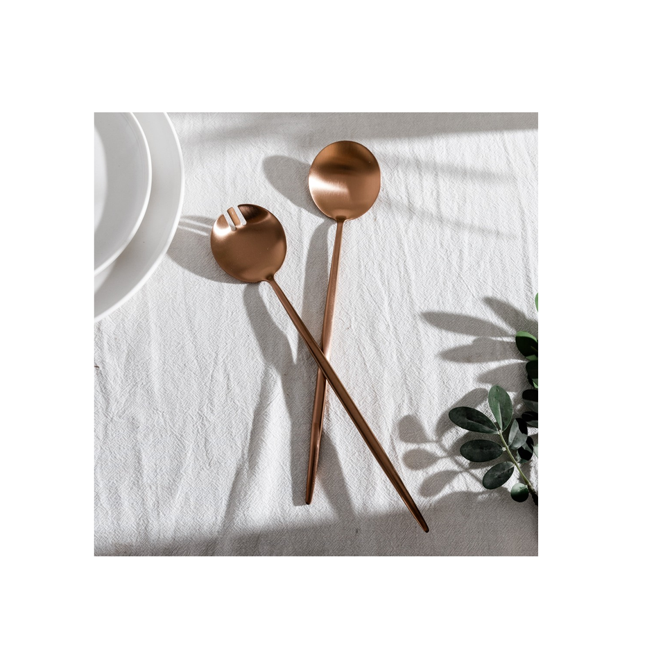 เซ็ต2ชิ้นชุดเซ็ตสลัดทองแดงมีหูจับยาวทำจากเหล็กมิเรอร์ขนาดและสีตามสั่ง