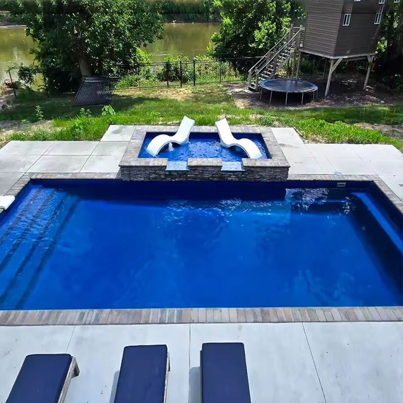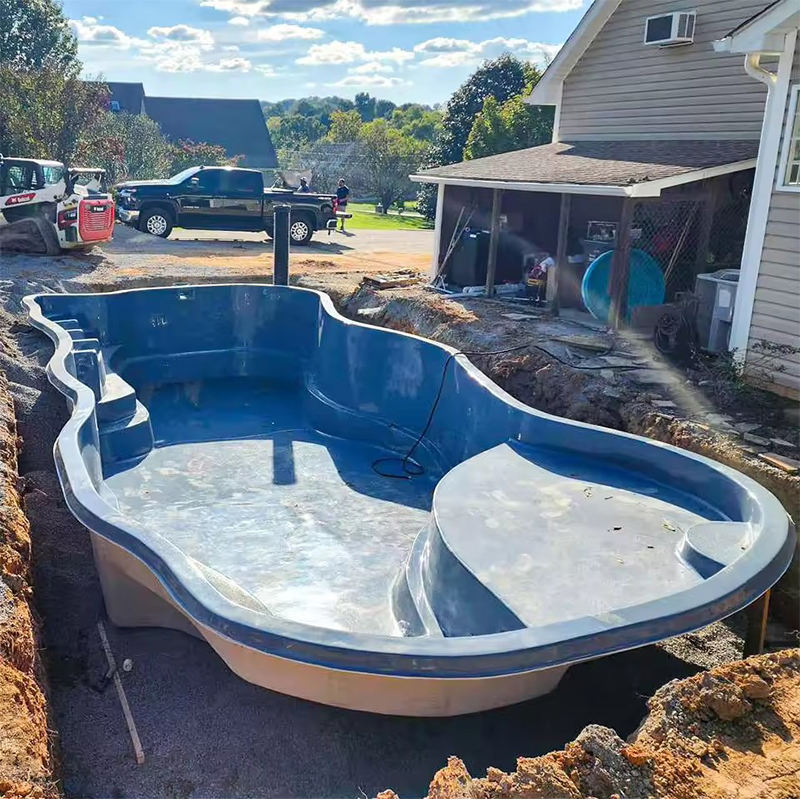 สระว่ายน้ำสำเร็จรูปขนาดใหญ่แบบโมดูลาร์ ไฟเบอร์กลาส สำหรับครอบครัว ขนาดและสีตามสั่ง ฝังดิน ใช้ในบ้าน 16x32