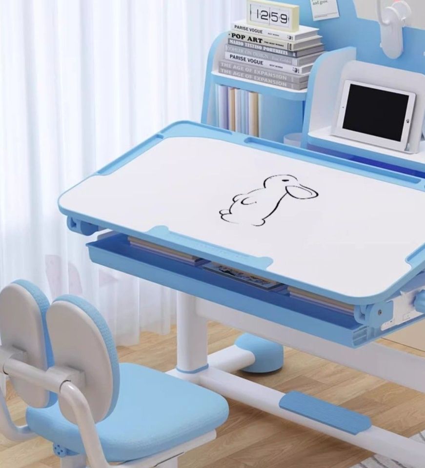 โต๊ะเขียนหนังสือเด็กพร้อมชั้นวางหนังสือแบบเรียบง่าย สีและขนาดตามสั่ง