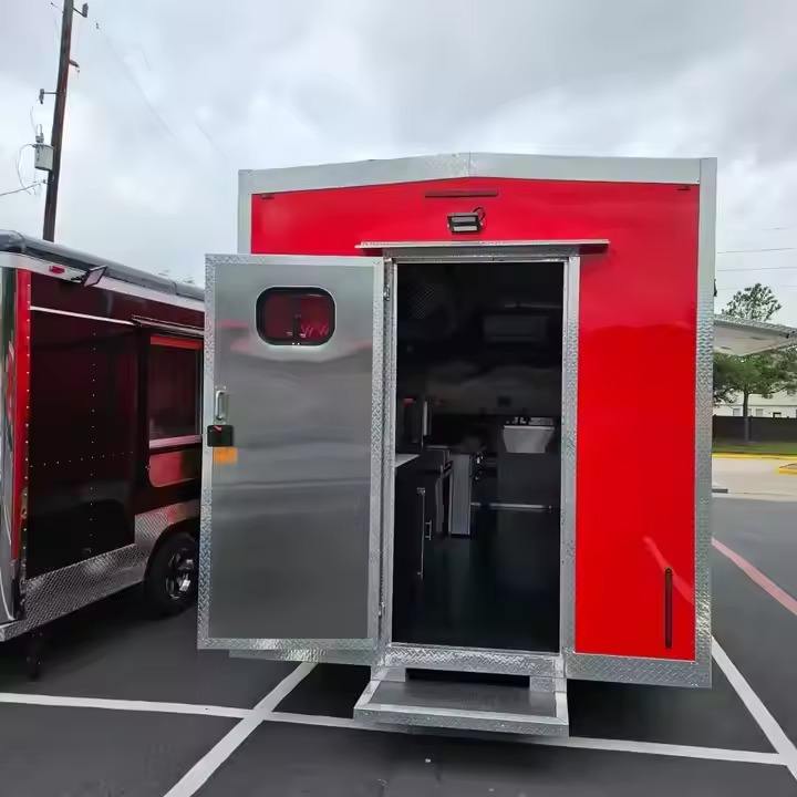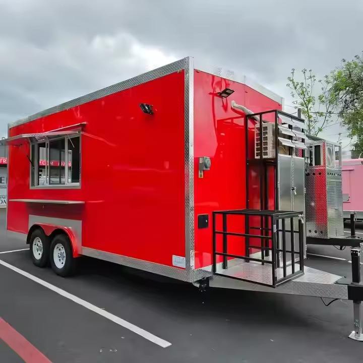 รถเทรลเลอร์อาหารจานด่วนพร้อมสติ๊กเกอร์เต็มรูปแบบรถบรรทุกอาหารเคลื่อนที่อุปกรณ์ทำอาหารสำหรับอาหารจานด่วนมีในสต็อก