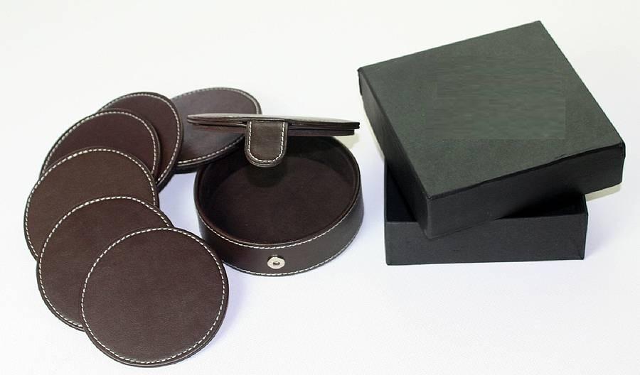 ชุดถาดรองแก้วหนังทรงกลมสีน้ำตาลไม่ลื่น