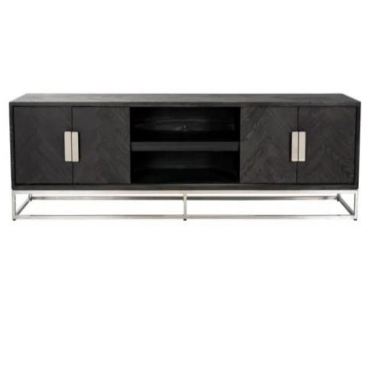ตู้วางทีวีไม้ทึบปรับขนาดได้สำหรับห้องนั่งเล่นตู้วางทีวีคอนโซลกลางเพื่อความบันเทิงโต๊ะวางทีวี
