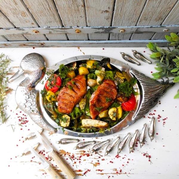 ถาดเสิร์ฟโลหะสไตล์โมเดิร์นปรับแต่งได้เครื่องครัวรูปนกพร้อมถาดงานฝีมือดีไซน์โบราณ