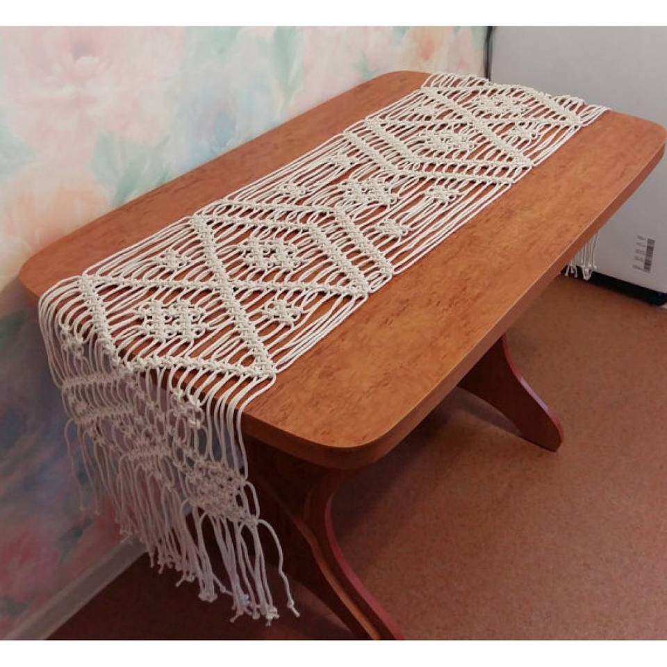 ผ้าคาดโต๊ะผ้าคอตตอนสีขาวผ้าถักลายโบฮีเมียนทรงโต๊ะผ้าคาดโต๊ะทำด้วยมือคุณภาพพรีเมียมขนาดตามสั่ง