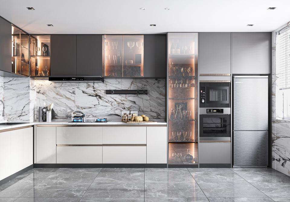 ตู้ครัวไม้เนื้อแข็งขนาดสั่งทำพิเศษ เป็นมิตรต่อสิ่งแวดล้อม ผลิตจากวัสดุคุณภาพ