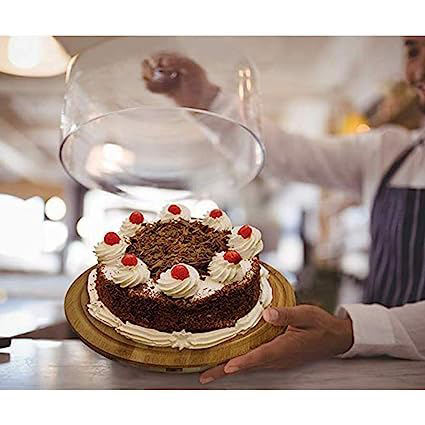 ที่ตั้งเค้กไม้แบบปรับแต่งได้ฐานไม้พร้อมฝาโดมแก้วสำหรับบิสกิตขนมอบอเนกประสงค์