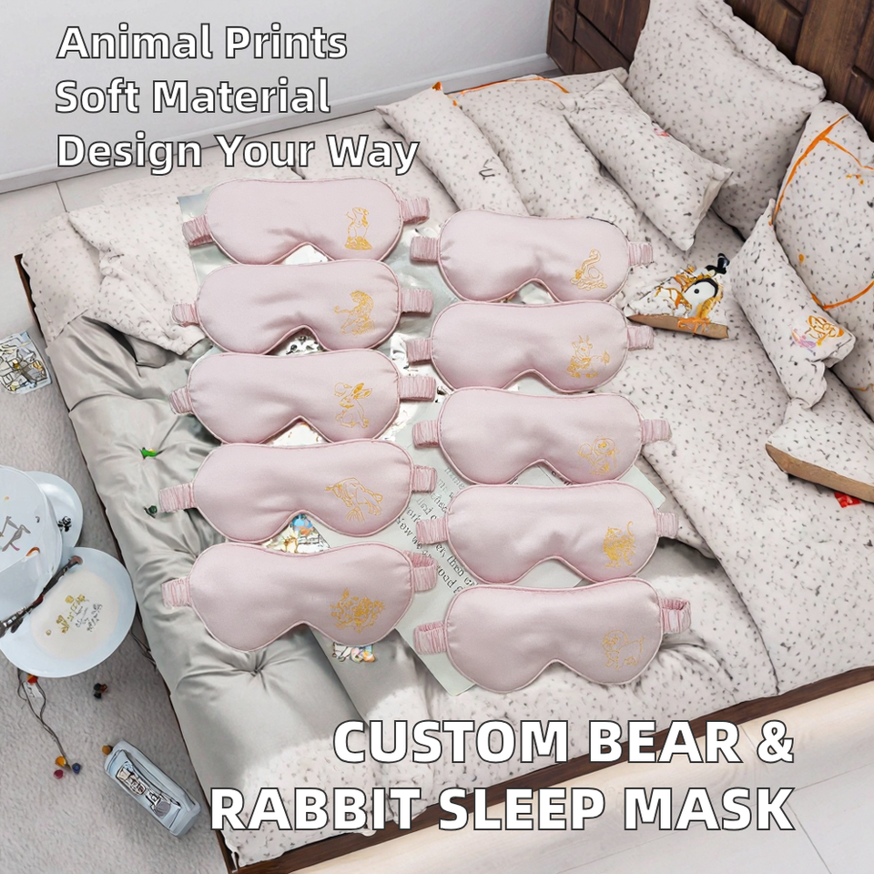 หน้ากากปิดตานอนปรับแต่งได้พิมพ์ลายกระต่ายหมีสำหรับนอนหลับ100% สบายสีสันสดใสโพลีเอสเตอร์สี่ฤดู