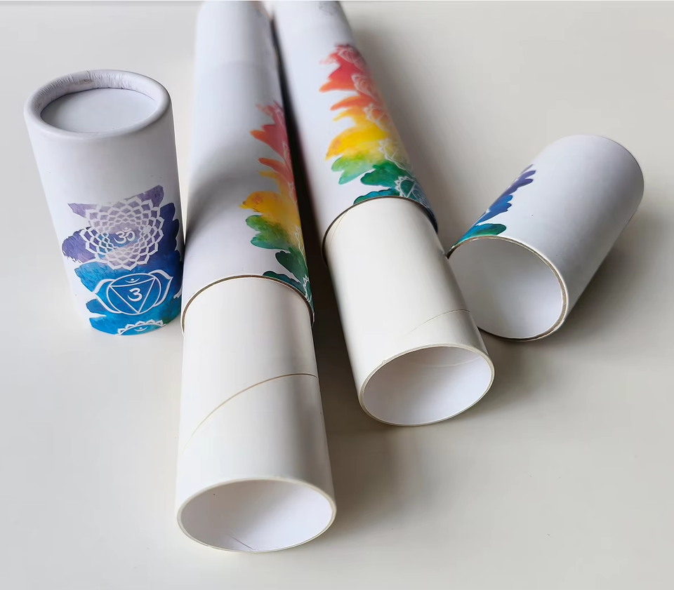 หลอดกระดาษโปสเตอร์ทรงกระบอกแบบบางสำหรับบรรจุธูปย่อยสลายได้ภาชนะบรรจุกระดาษแข็งรีไซเคิลได้สำหรับงานตามสั่ง