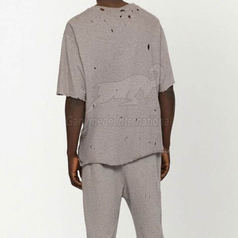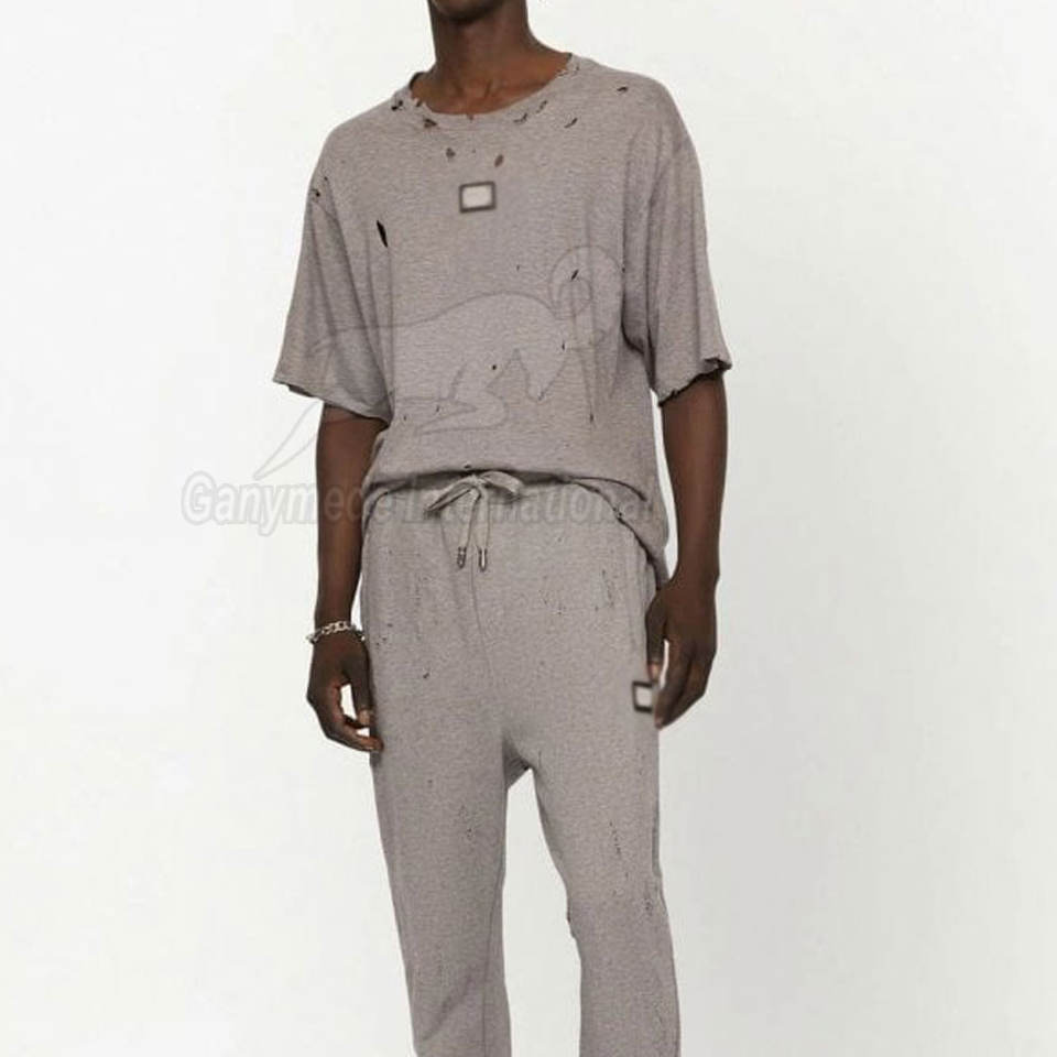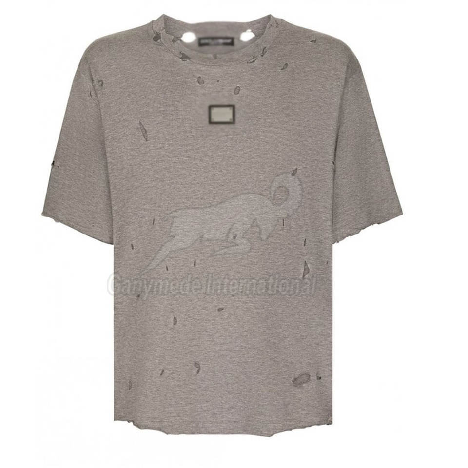 เสื้อยืดผู้ชายทรงสลิมฟิต ผ้าฝ้ายถัก 100% แบบดิสเทรส แห้งเร็ว คุณภาพสูง ราคาคุ้มค่า