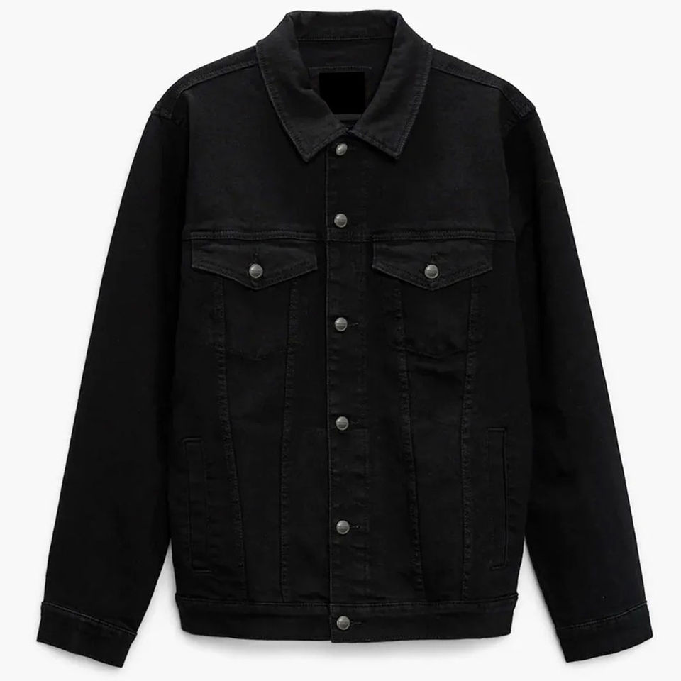 แจ็คเก็ตยีนส์ทรงสลิมฟิตแบบสั่งตัดได้ สำหรับผู้ชายและผู้หญิง สไตล์ลำลอง วินเทจ ขาดๆ แบบมีสไตล์ สีน้ำเงิน ดำ เทา น้ำหนักเบา ทันสมัย สวมใส่สบาย ด้านหน้า