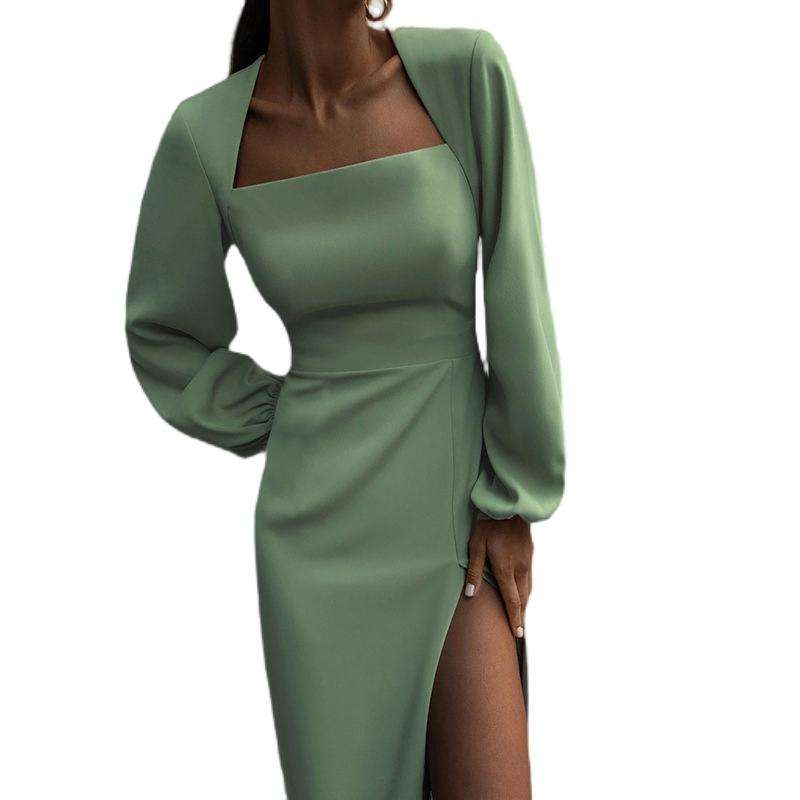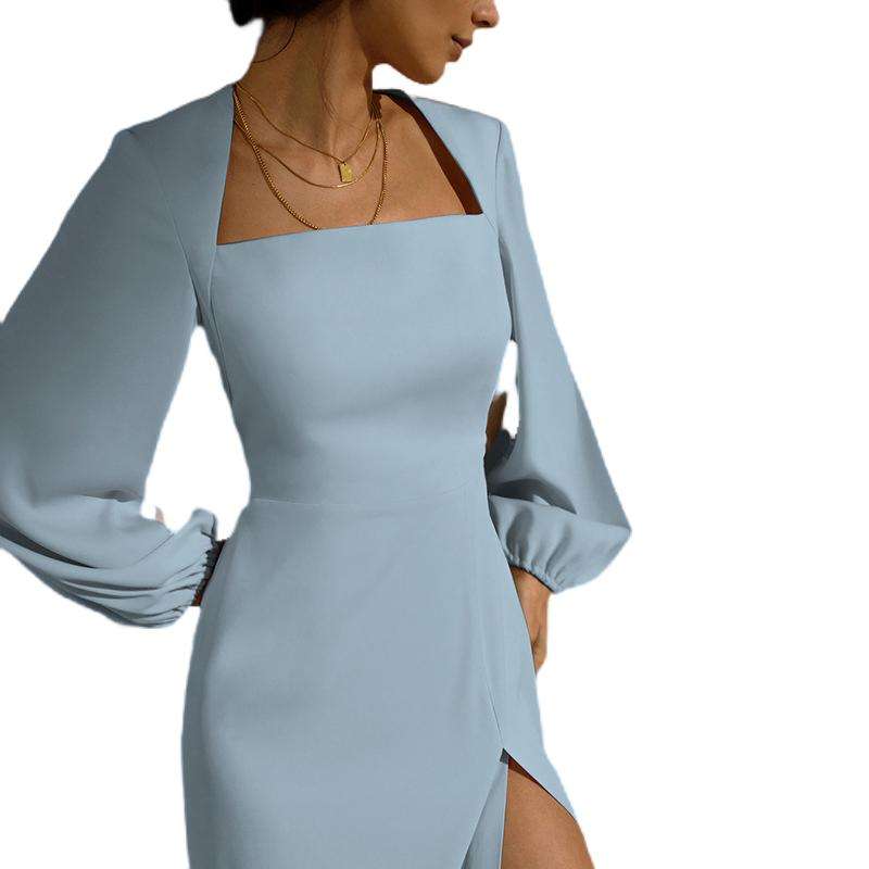 ชุดเดรสปาร์ตี้ออกกำลังเข้ารูปสำหรับผู้หญิงเดรสยาวคอเหลี่ยมแขนยาวเข้ารูปงานปาร์ตี้ฟิตเนสเข้ารูปงาน