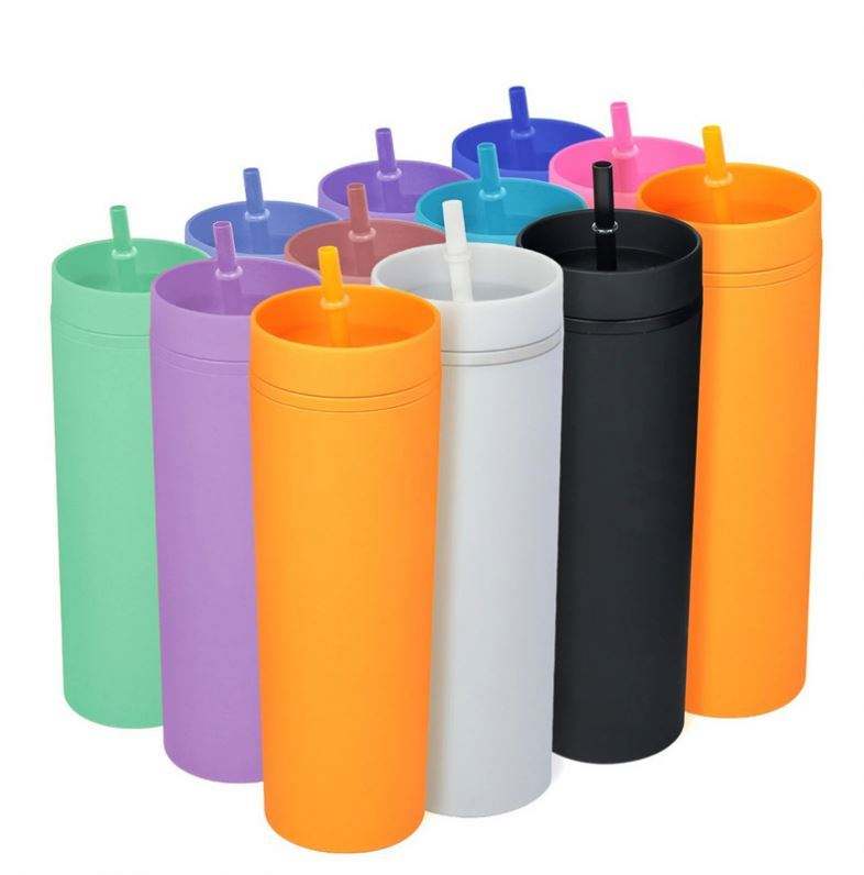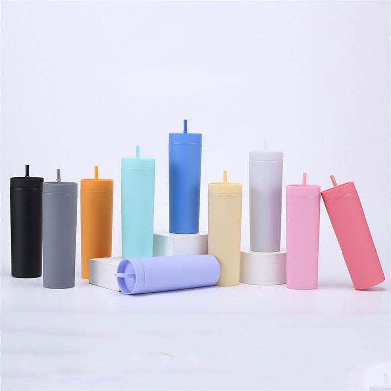 แก้วทัมเบลอร์พลาสติกพร้อมหลอดขนาด16ออนซ์แก้วน้ำสีพาสเทลอะคริลิคบางผอมปรับแต่งได้