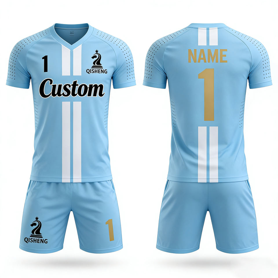 Customized Soccer Jersey Thailand Quality Custom Light Blue Color Blocking Team Football Jerseys Sets for Maillot PSG