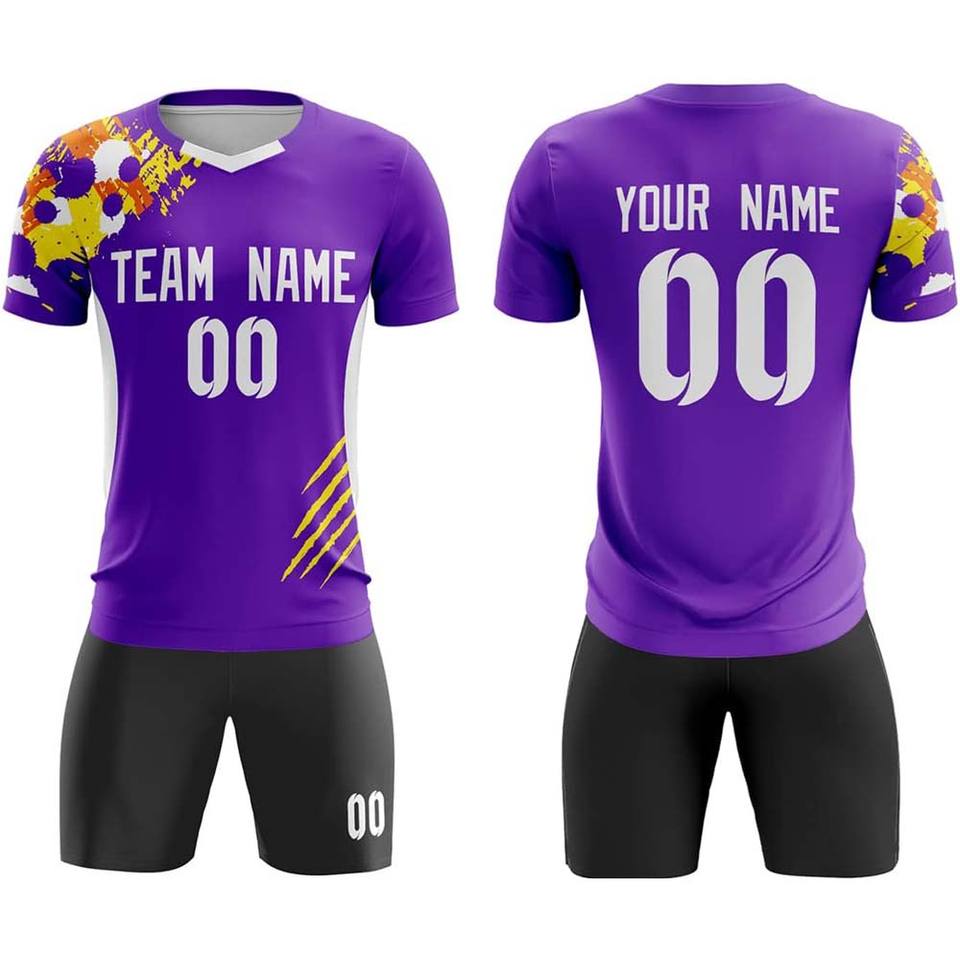 ชุดยูนิฟอร์มฟุตบอลผ้าแห้งเร็วมีหมายเลขโลโก้ออกแบบตามต้องการ