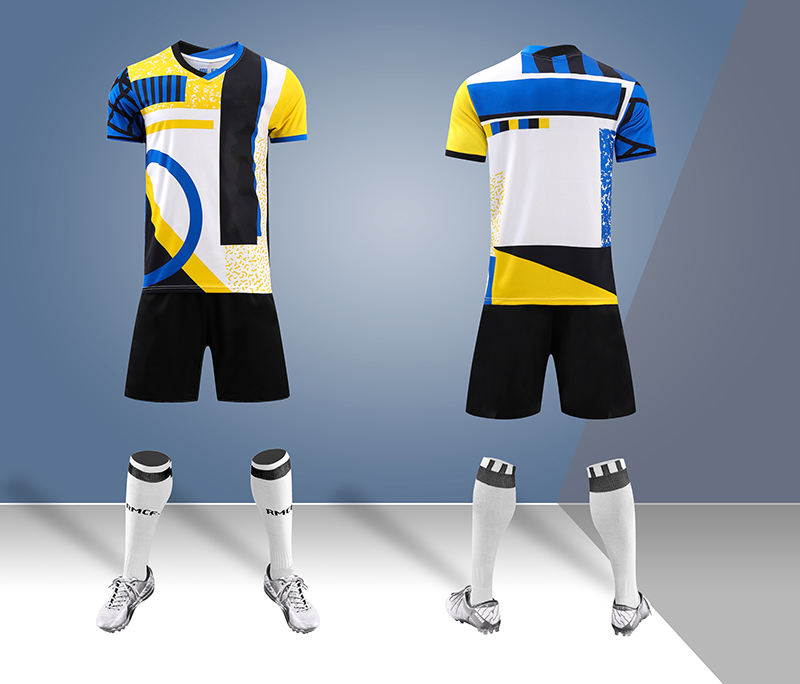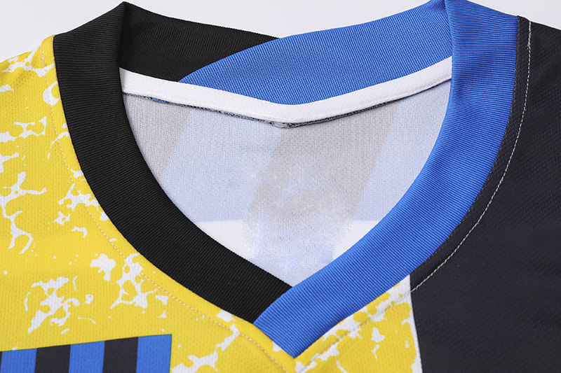 ชุดฟุตบอลสั่งทำพิเศษ สีเหลืองและสีดำ แขนสั้น พิมพ์ลาย โพลีเอสเตอร์ 100% พร้อมตัวเลือกโลโก้แบบกำหนดเอง