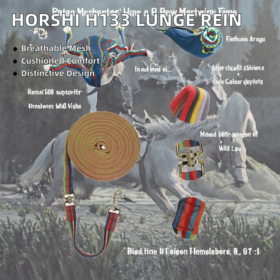 สายจูงม้าแบบตาข่ายบุนุ่มพิเศษ ความยาว 8 เมตร พร้อมห่วงหมุนและแผ่นรองรับแรงกระแทก