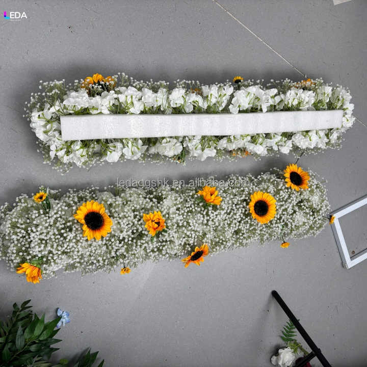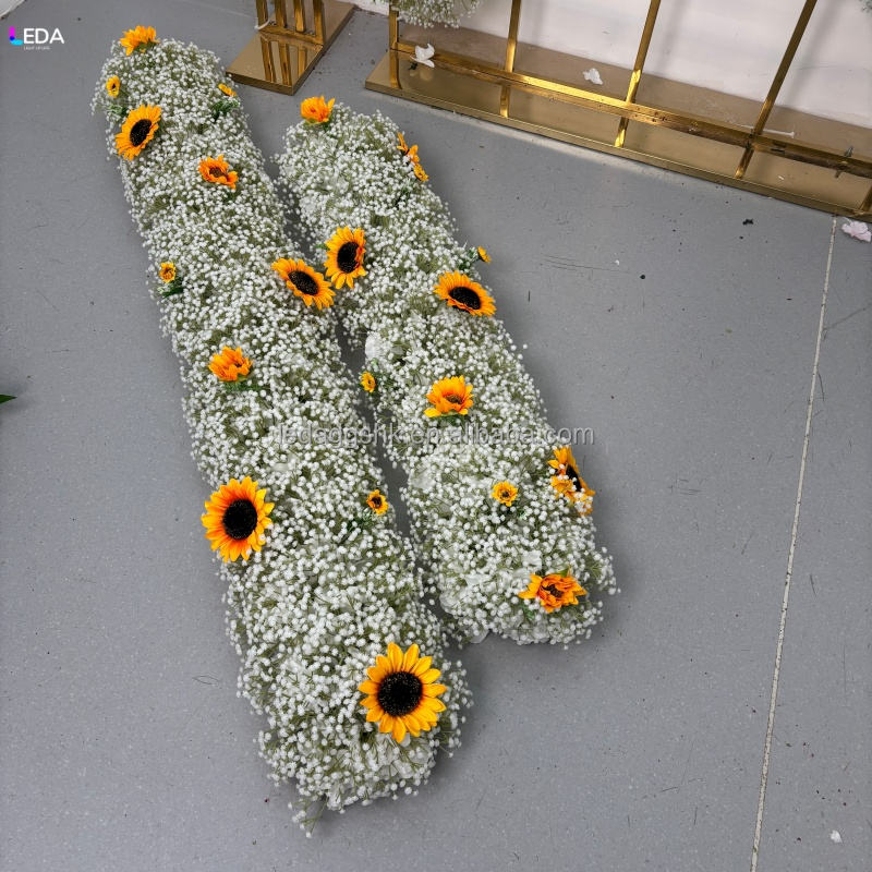 พรมดอกไม้ประดิษฐ์แบบนุ่มสำหรับงานแต่งงาน ตกแต่งด้วยดอกทานตะวันและดอกยิปโซฟิลลา ทำด้วยมือ เหมาะสำหรับงานอีเว้นท์ ปาร์ตี้ และวันวาเลนไทน์