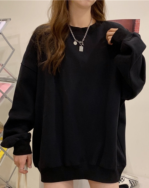 เสื้อสเวตเชิ้ตสีพื้นแบบกำหนดเอง ทรงหลวม สไตล์ลำลอง เสื้อฮู้ดดี้คอกลมสำหรับผู้หญิง