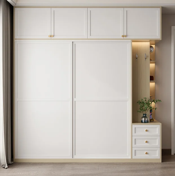 ตู้เสื้อผ้าไม้จริงสั่งทำพิเศษสำหรับห้องนอนใหญ่ ตู้เสื้อผ้าบานเลื่อนสำหรับคู่รัก