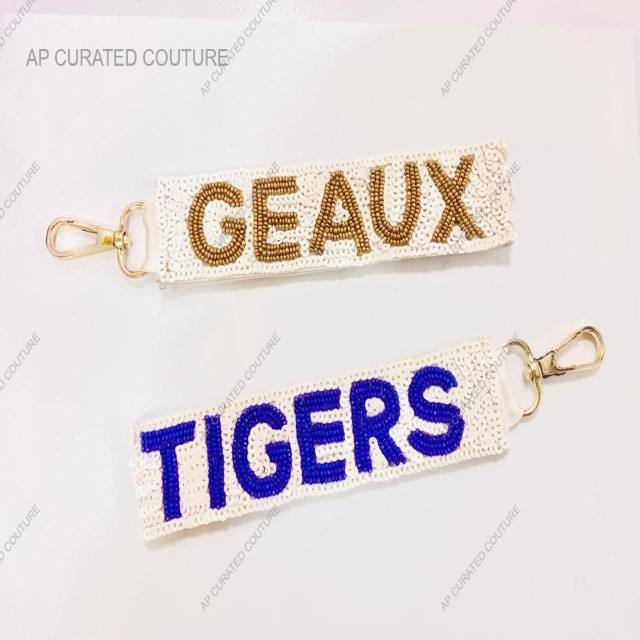 พวงกุญแจกระเป๋าถือประดับลูกปัดเลื่อมประกายที่กำหนดเองพวงกุญแจสีสดใสพร้อมที่คาดผมประดับ