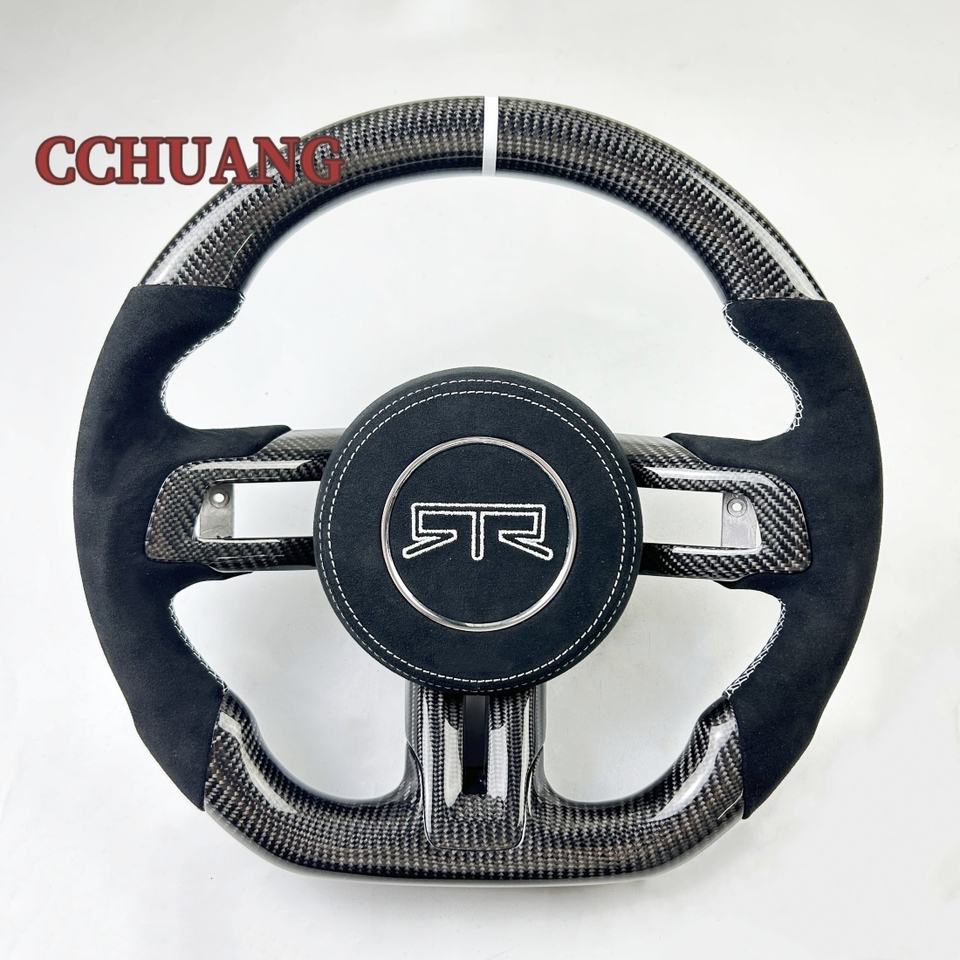 พวงมาลัยคาร์บอนไฟเบอร์แบบสปอร์ตที่ปรับแต่งได้สำหรับพวงมาลัยแบบมีระบบทำความร้อนของรถฟอร์ด มัสแตง จีที