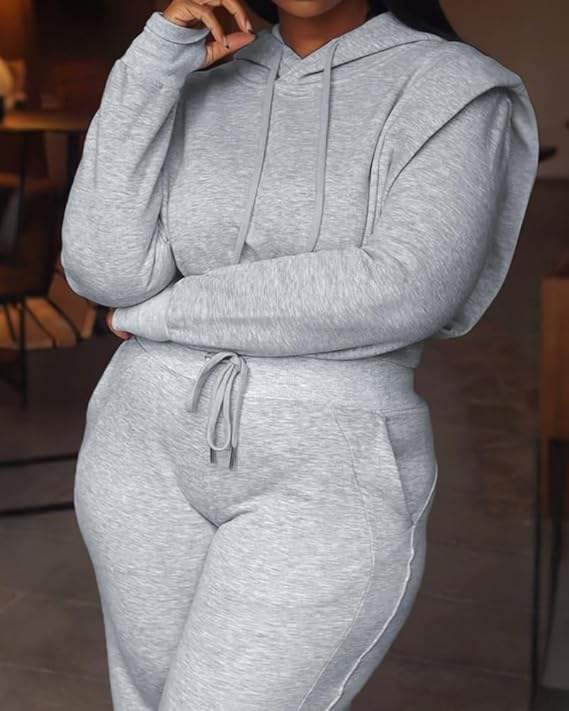ชุดเซ็ทลำลองสองชิ้น เสื้อครอปสปอร์ตและกางเกงจ็อกเกอร์สำหรับผู้หญิง สไตล์สตรีทแฟชั่น ใส่ได้ทุกวัน