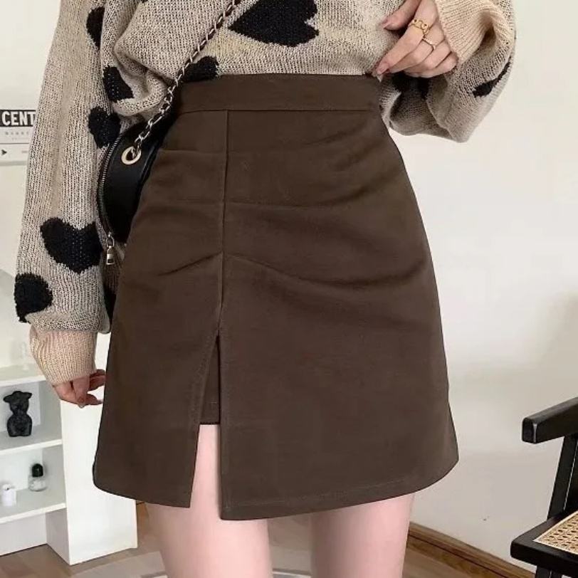 กระโปรงสั่งตัดสำหรับฤดูใบไม้ผลิและฤดูร้อน รุ่นใหม่ หนาขึ้น แฟชั่นทันสมัย เอวสูง ทรงเข้ารูป ผ่าข้าง