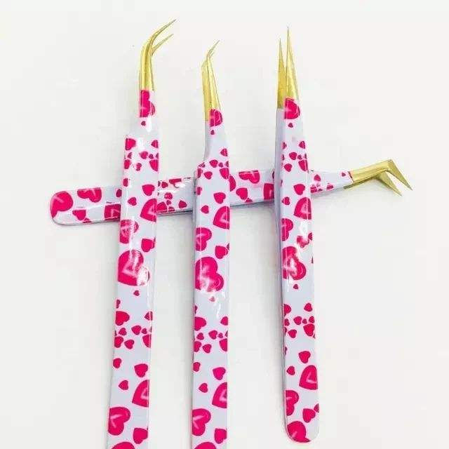 ชุดแหนบต่อขนตาปลายเรียบ ด้ามจับสแตนเลสสตีลแบบกำหนดเอง ป้องกันแม่เหล็ก จับถนัดมือ ปลายสีทอง ผลิตในปากีสถาน