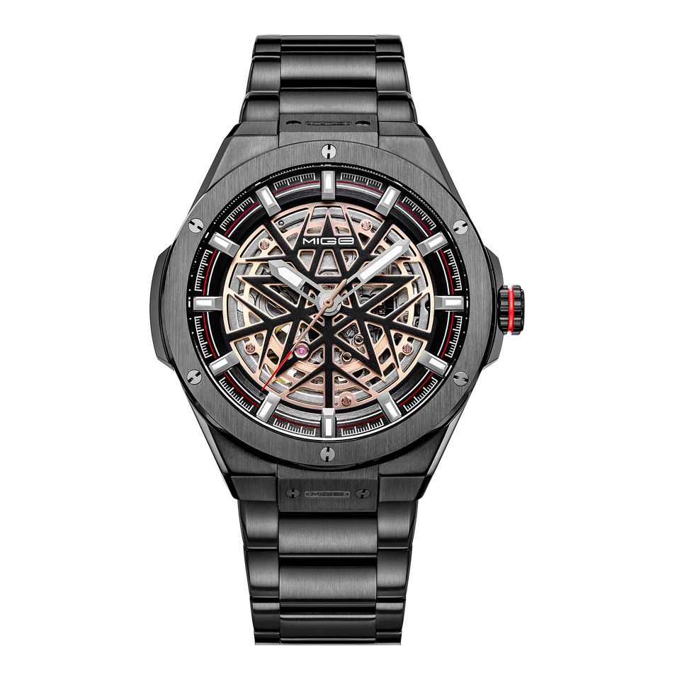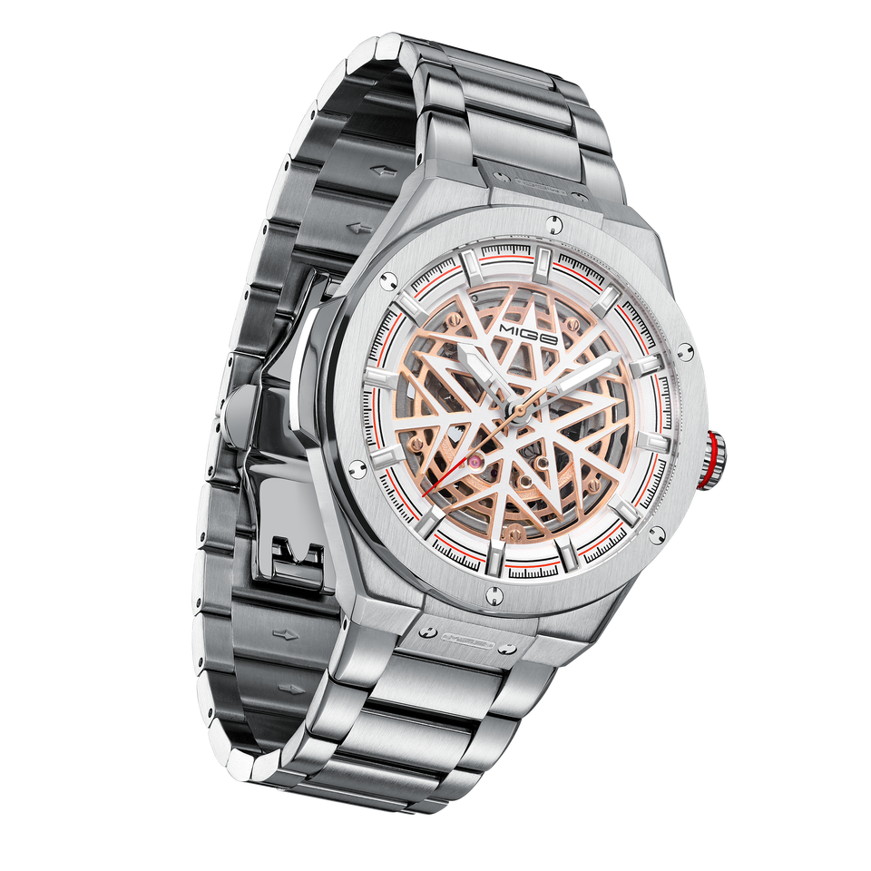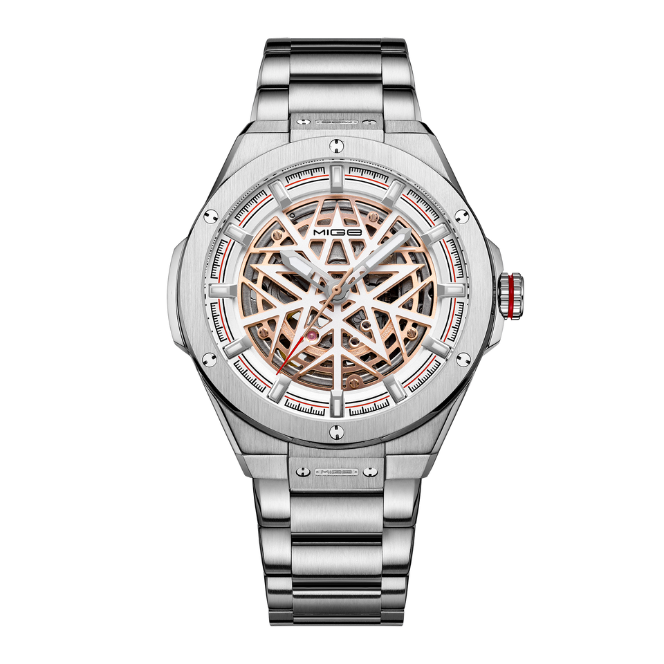 นาฬิกากลไกสำหรับผู้ชายสายหนังหน้าปัดทรงกลมทำจากสแตนเลสสามารถปรับแต่งได้ตามต้องการ