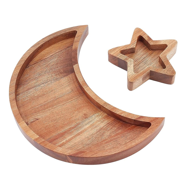 ถาดไม้ลายดาวและพระจันทร์แบบกำหนดเอง มีจำหน่ายในราคาที่เข้าถึงได้ สินค้าใหม่ ถาดไม้สำหรับเสิร์ฟขนมหวาน