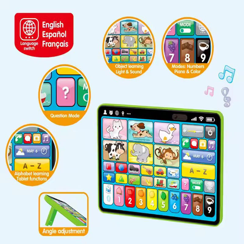 แท็บเล็ตการศึกษาสำหรับเด็กแบบกำหนดเอง ของเล่นเครื่องเรียนรู้ระบบสัมผัสพร้อมเสียง ฟังก์ชันสอนภาษาอังกฤษอัจฉริยะ วัสดุพลาสติกอัลคาไลน์