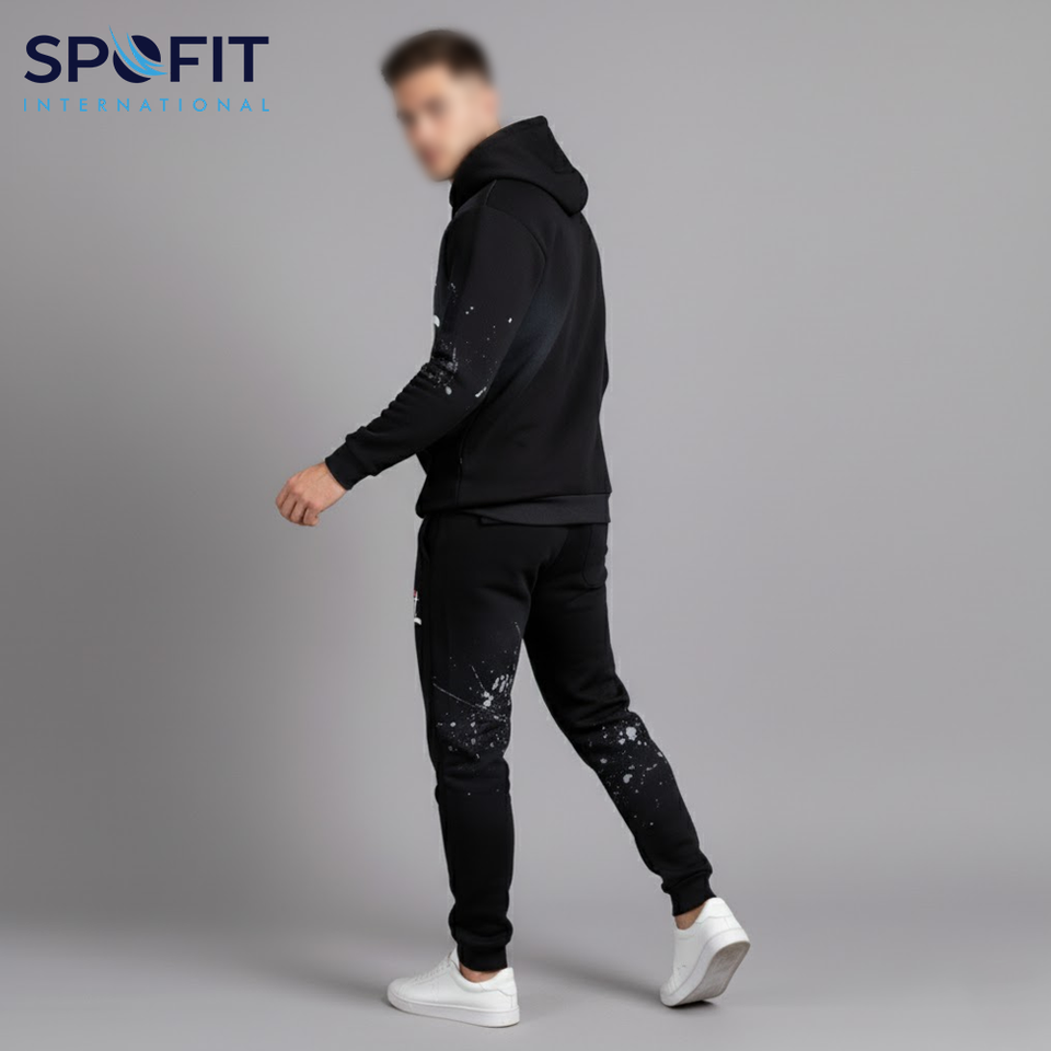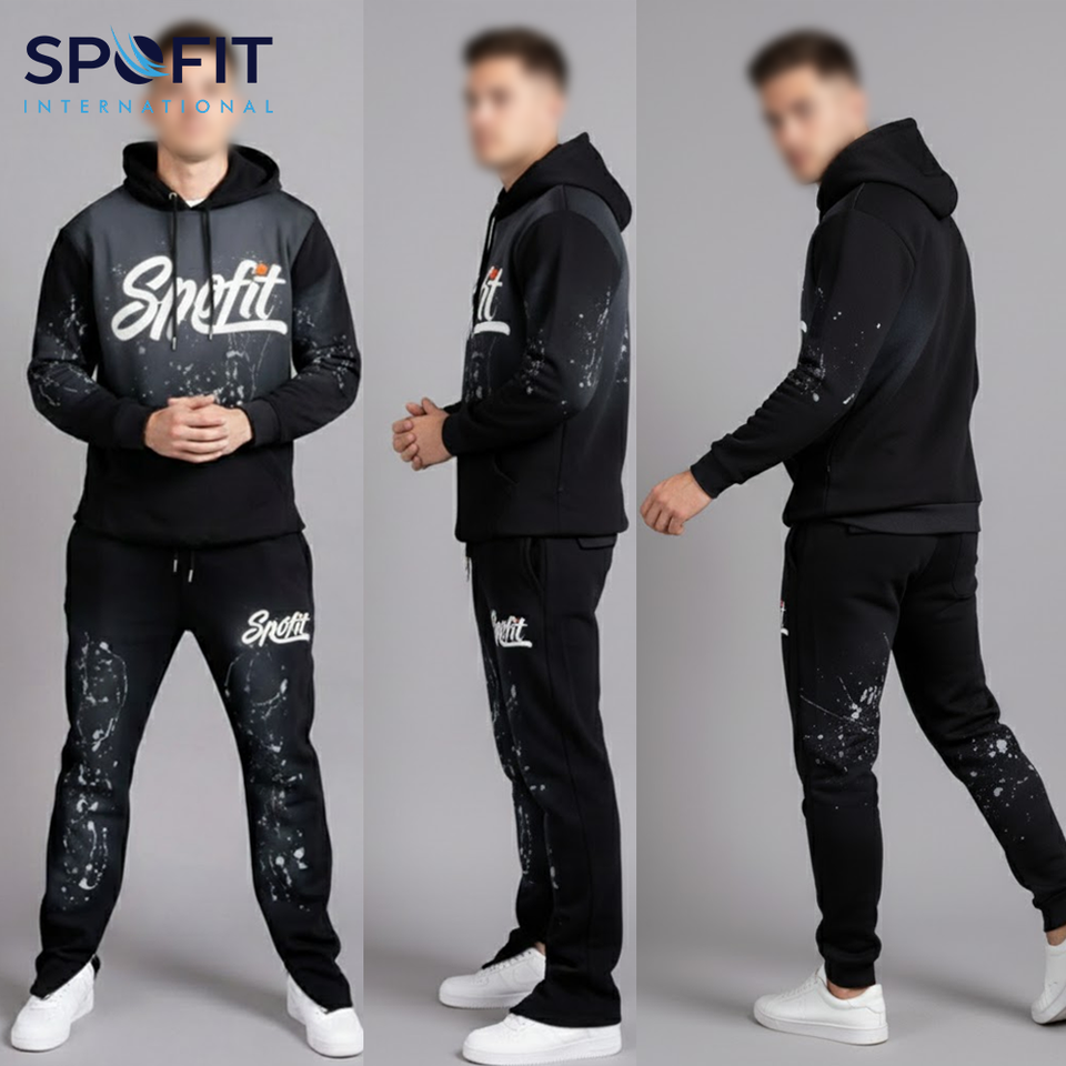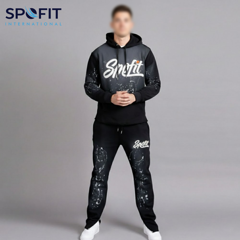 ชุดวอร์มมีฮู้ดสีทึบสำหรับผู้ชายชุดวอร์มพิมพ์ลายดิจิทัลแนวสตรีทผ้าซักแบบกำหนดเอง