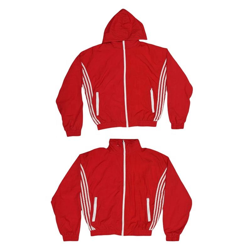 ชุดวอร์มไนลอนแบบมีแถบย่น รุ่นฤดูหนาว ไซส์พลัส สำหรับทุกเพศ บุซับในอุ่น พร้อมฮู้ดซ่อนในปกเสื้อ