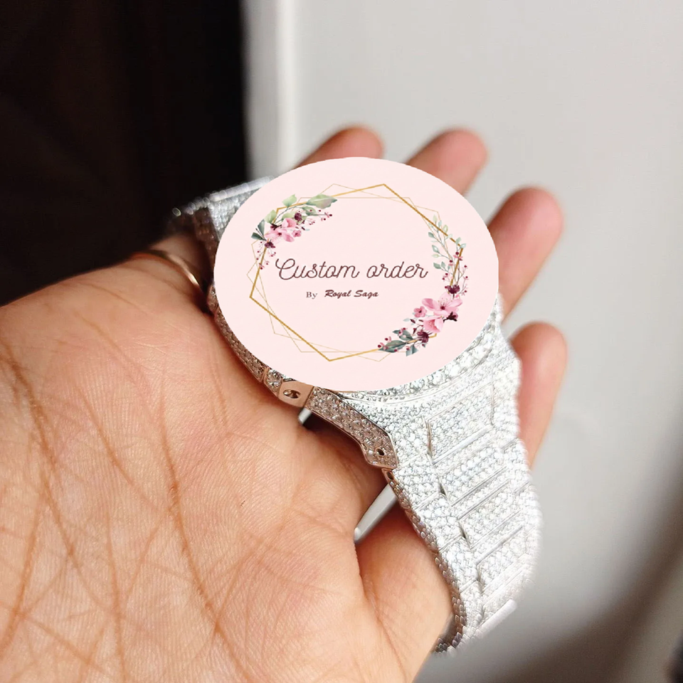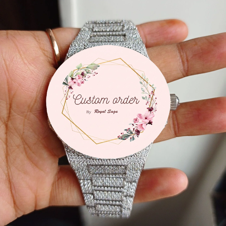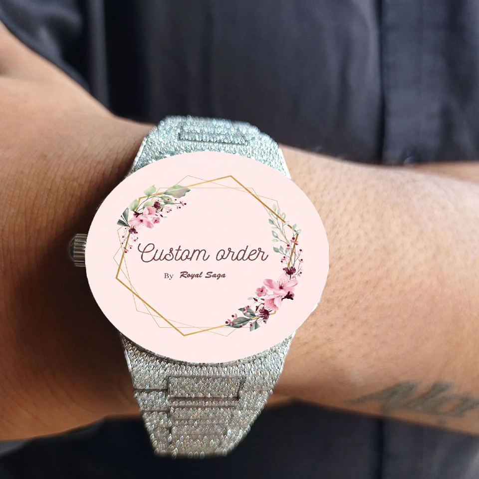 นาฬิกาข้อมือผู้ชายแบบสั่งทำพิเศษ หน้าปัดประดับเพชรโมอิสซาไนต์ ตัวเรือนสแตนเลสสตีลทำมือ ประดับเพชรเต็มเรือน