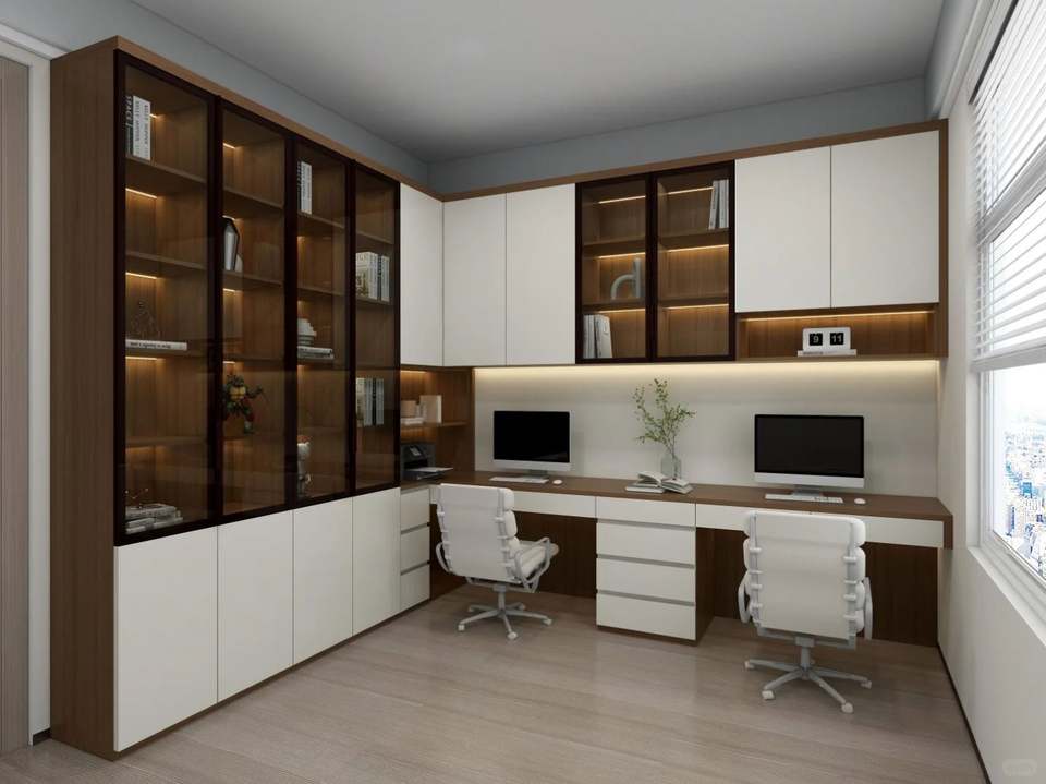 ชุดเฟอร์นิเจอร์ห้องอ่านหนังสือแบบกำหนดเอง ตู้หนังสือรวมกับโต๊ะทำงาน ชุดเฟอร์นิเจอร์ห้องอ่านหนังสือรุ่นล่าสุด