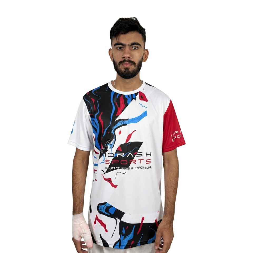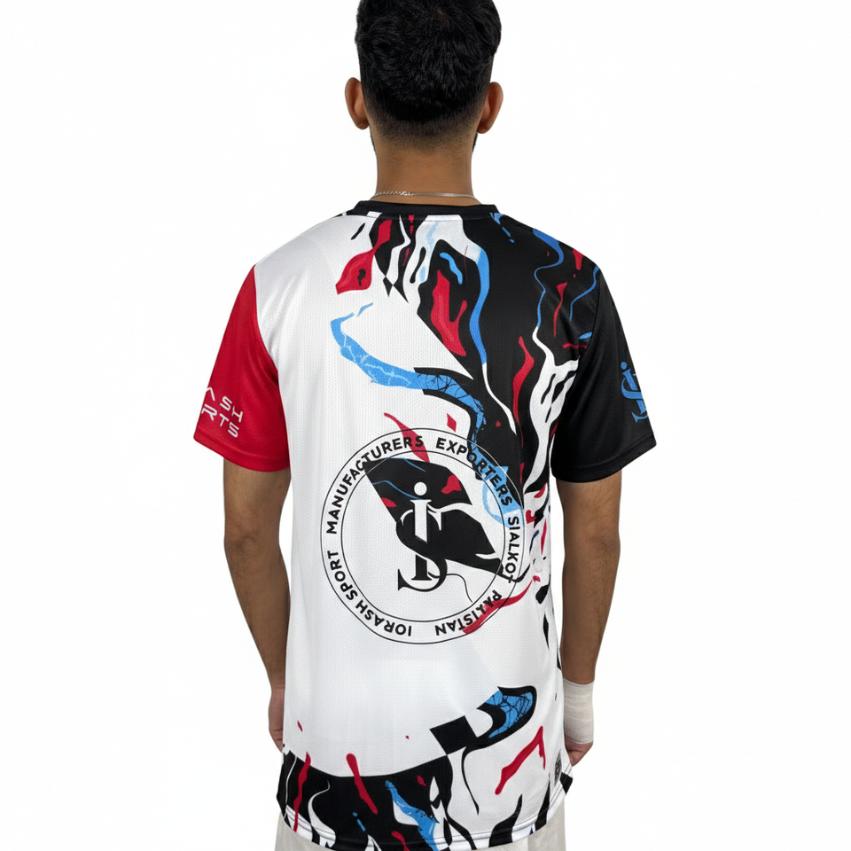 บริการรับผลิตเสื้อซับลิเมชั่นแบบกำหนดเอง เสื้อยืดพรีเมียมสำหรับผู้ชาย ผลิตจากผ้าฝ้ายโพลีเอสเตอร์ 100% ระบายอากาศได้ดี