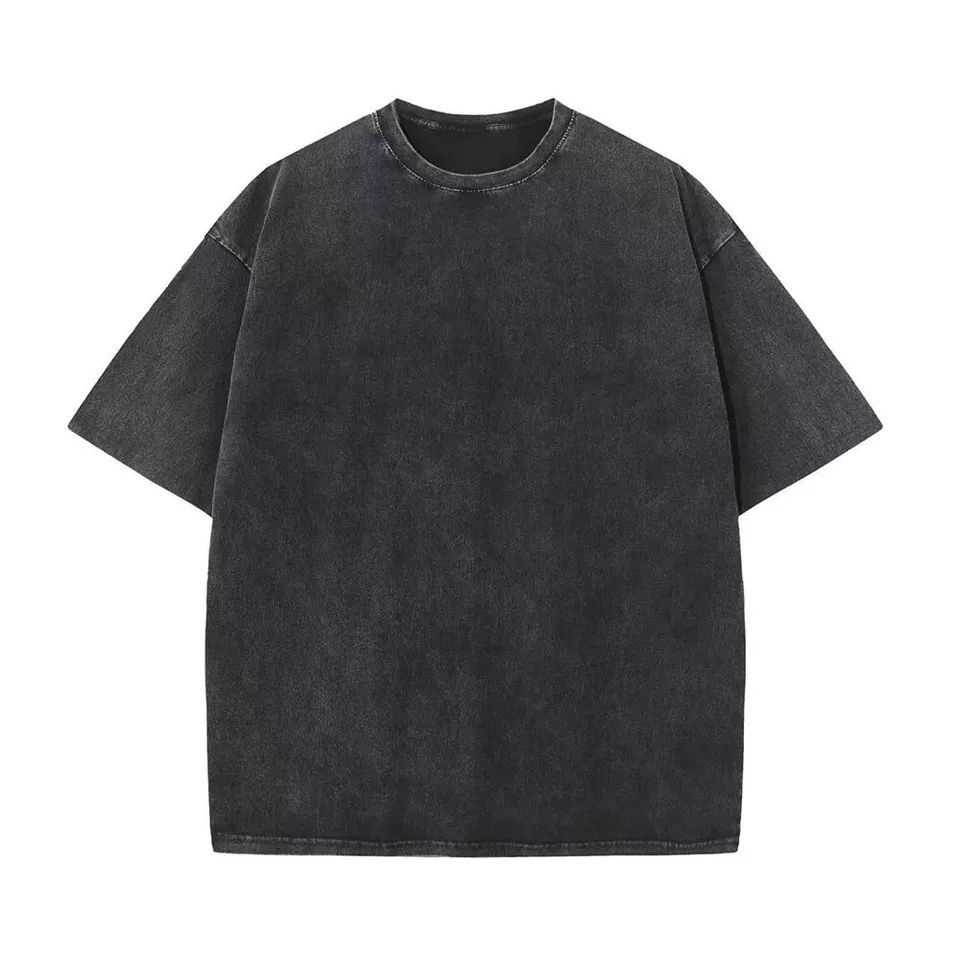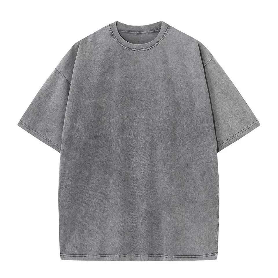 เสื้อยืดแฟชั่นสำหรับผู้ชายสำหรับฤดูร้อนออกแบบได้ตามต้องการผ้าฝ้าย100% พร้อมเอฟเฟคซักกรดและพิมพ์โลโก้ DTG แบบกำหนดเอง