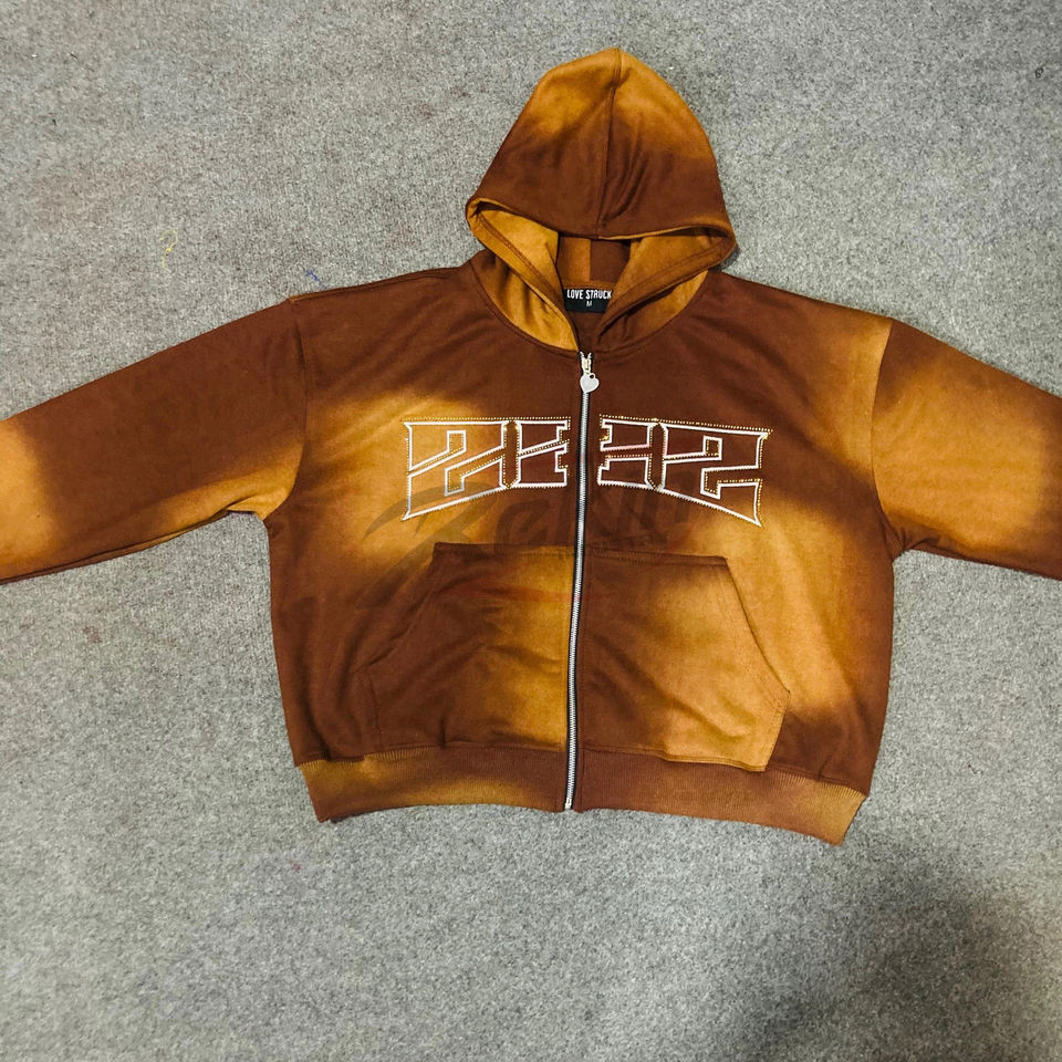 เสื้อมีฮู้ดซิปปักลายพลอยเทียมลายพระอาทิตย์จางหายไปตามสั่งลายสีพื้นมีฮู้ดแบบมีซิปปักมีฮู้ดหินไรน์สโตน