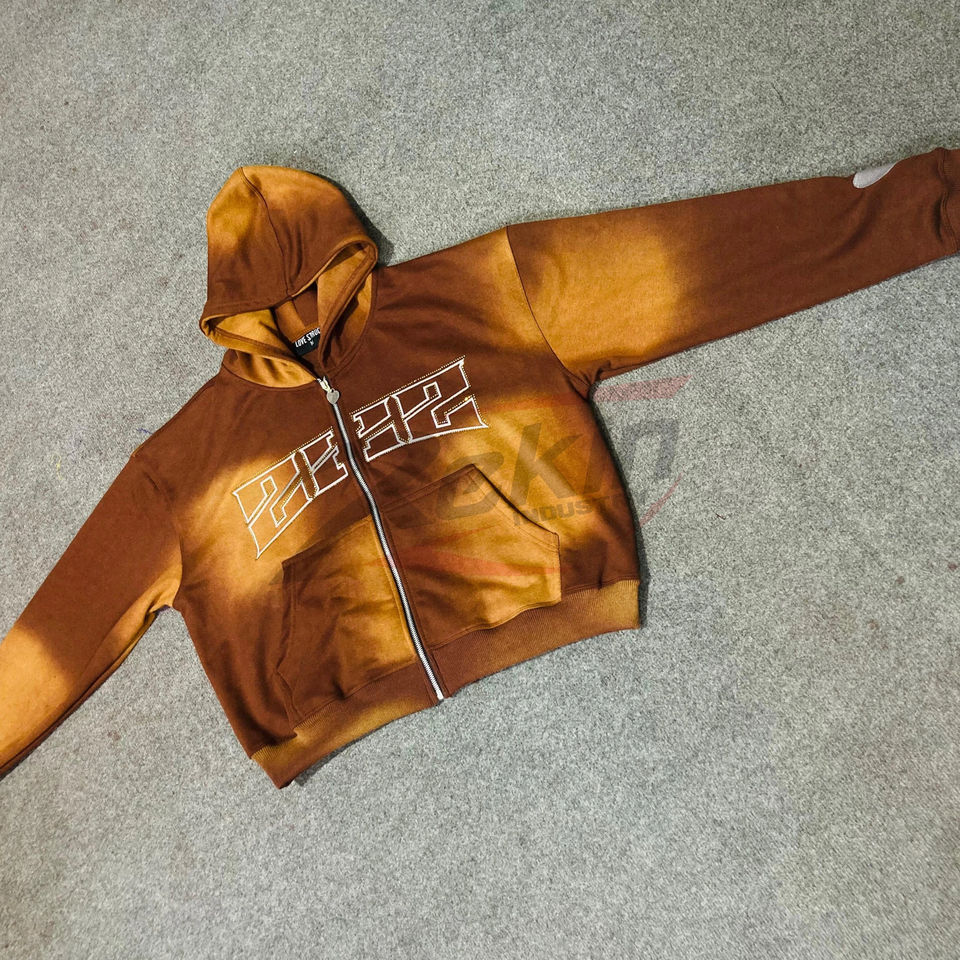 ชื่อผลิตภัณฑ์:เสื้อมีฮู้ดปักลายมีซิปของผู้ชายลายประดับพลอยเทียม Sunfaded ออกแบบได้ตามต้องการ