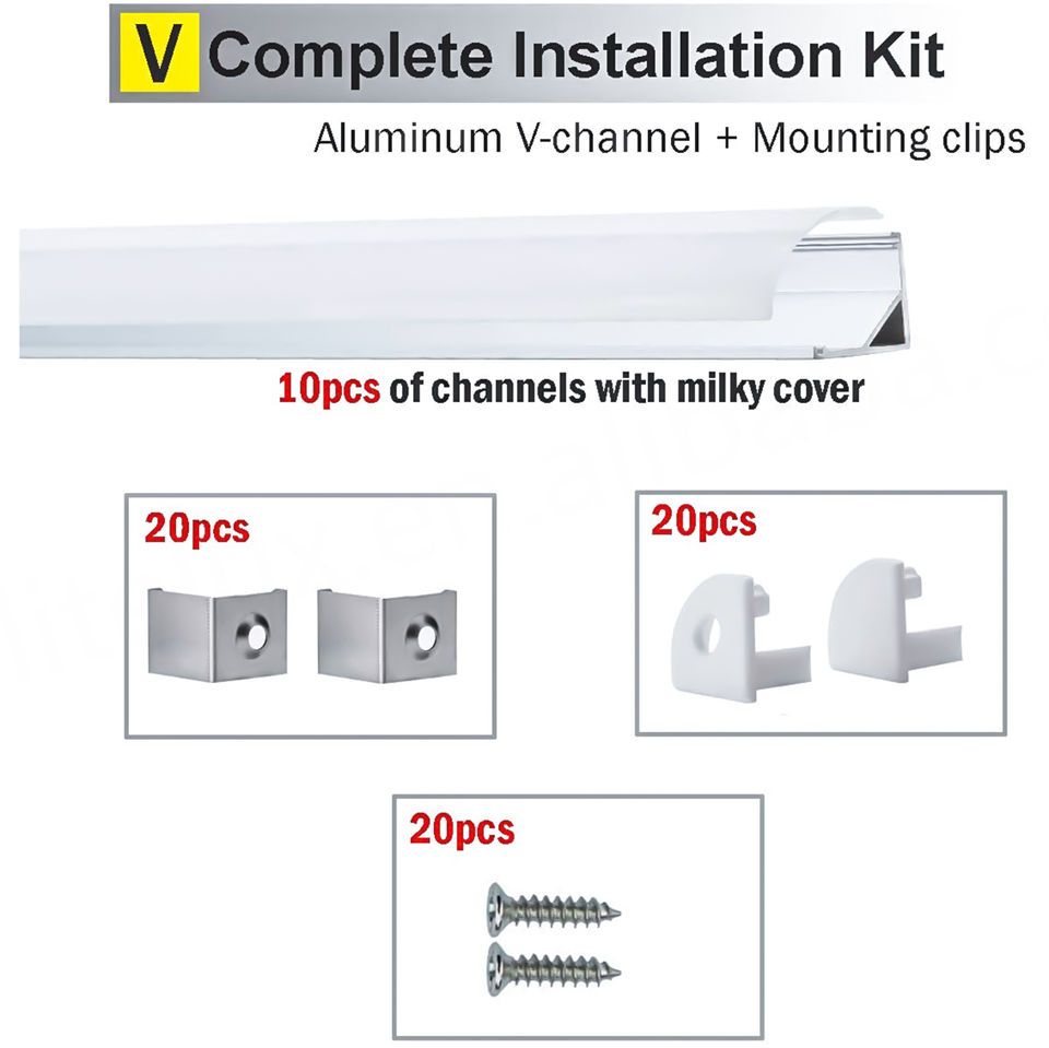 โปรไฟล์อะลูมิเนียม LED แบบเส้นตรงกันน้ำ IP65 รูปทรงวีบางเฉียบแบบกำหนดเอง ขนาด 1 ม. 2 ม. 3 ม. สำหรับไฟ LED