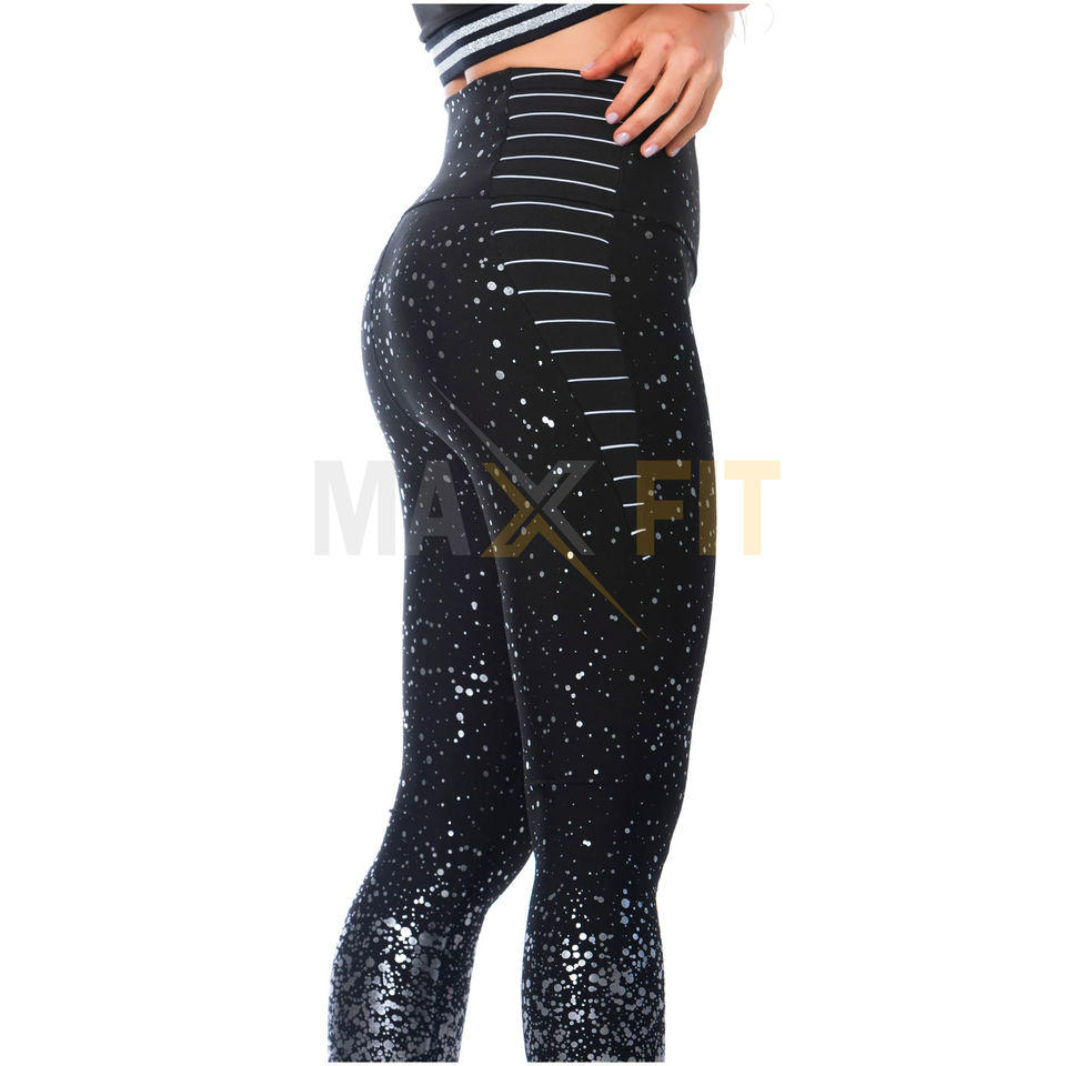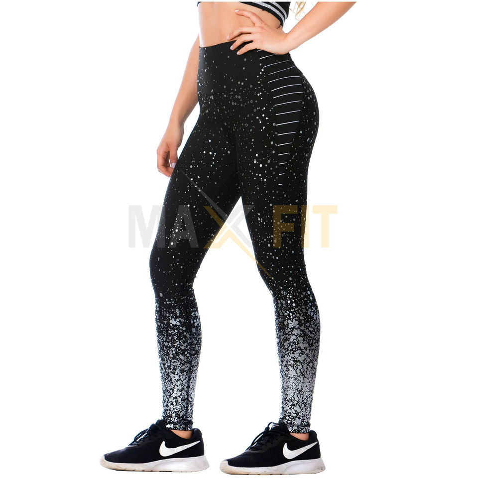 เลกกิ้งเอวสูงสำหรับผู้หญิงเลกกิ้งออกกำลังกายพิมพ์ลายทางปรับแต่งได้แฟชั่น