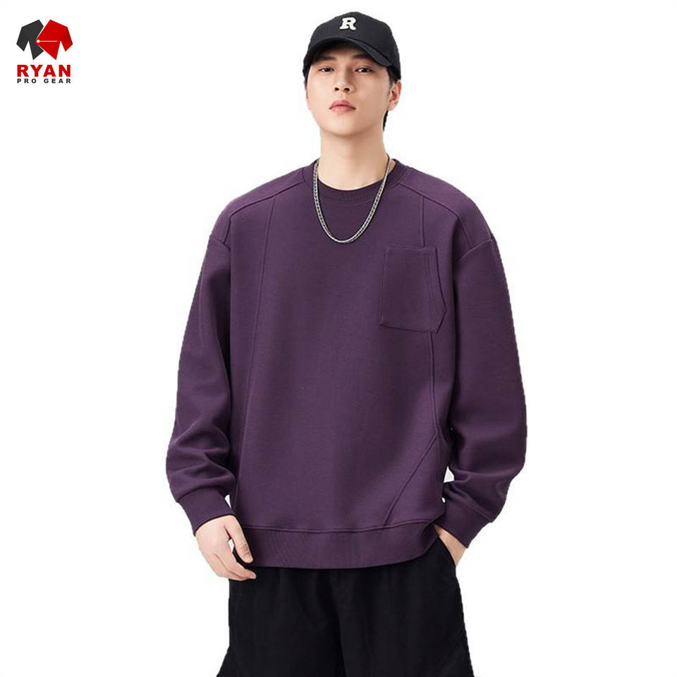 เสื้อสเวตเชิ้ตผู้ชายแบบสั่งทำ ผ้าสวมใส่สบาย ระบายอากาศได้ดี พิมพ์โลโก้ตามสั่ง