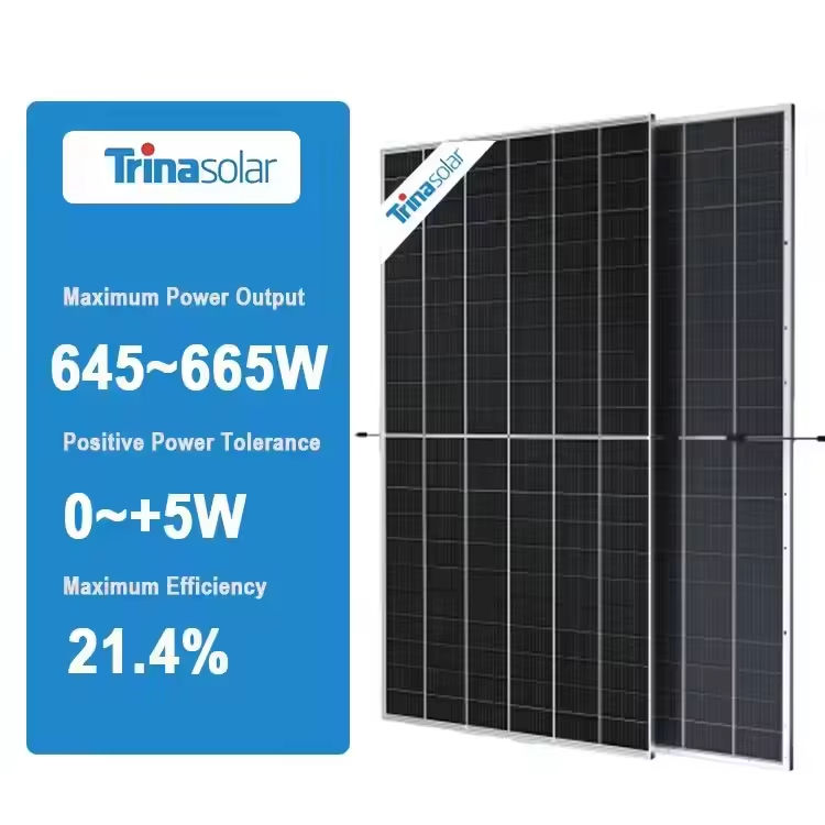 แผงโซลาร์เซลล์ Trina 645-665W แบบปรับแต่งได้645 655 660 665วัตต์ Trina Vertex แผงโซลาร์เซลล์กระจกสองชั้น