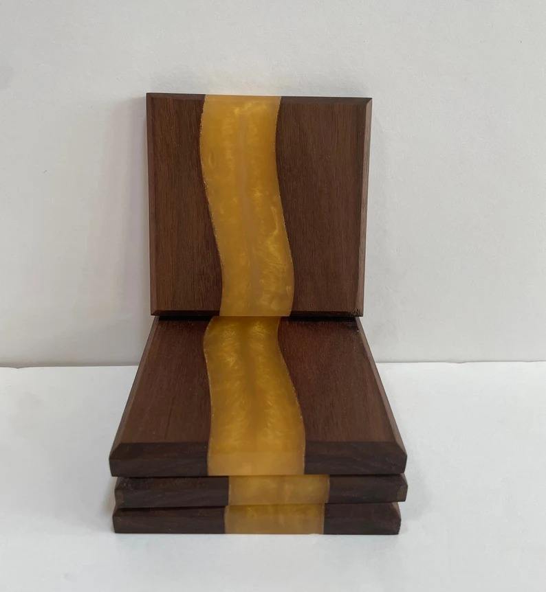 แผ่นรองแก้วกาแฟทำจากไม้และเรซินแผ่นรองแก้วสำหรับตกแต่งโรงแรมหรูหราแผ่นรองแก้วทำจากยางเรซินสำหรับร้านอาหาร