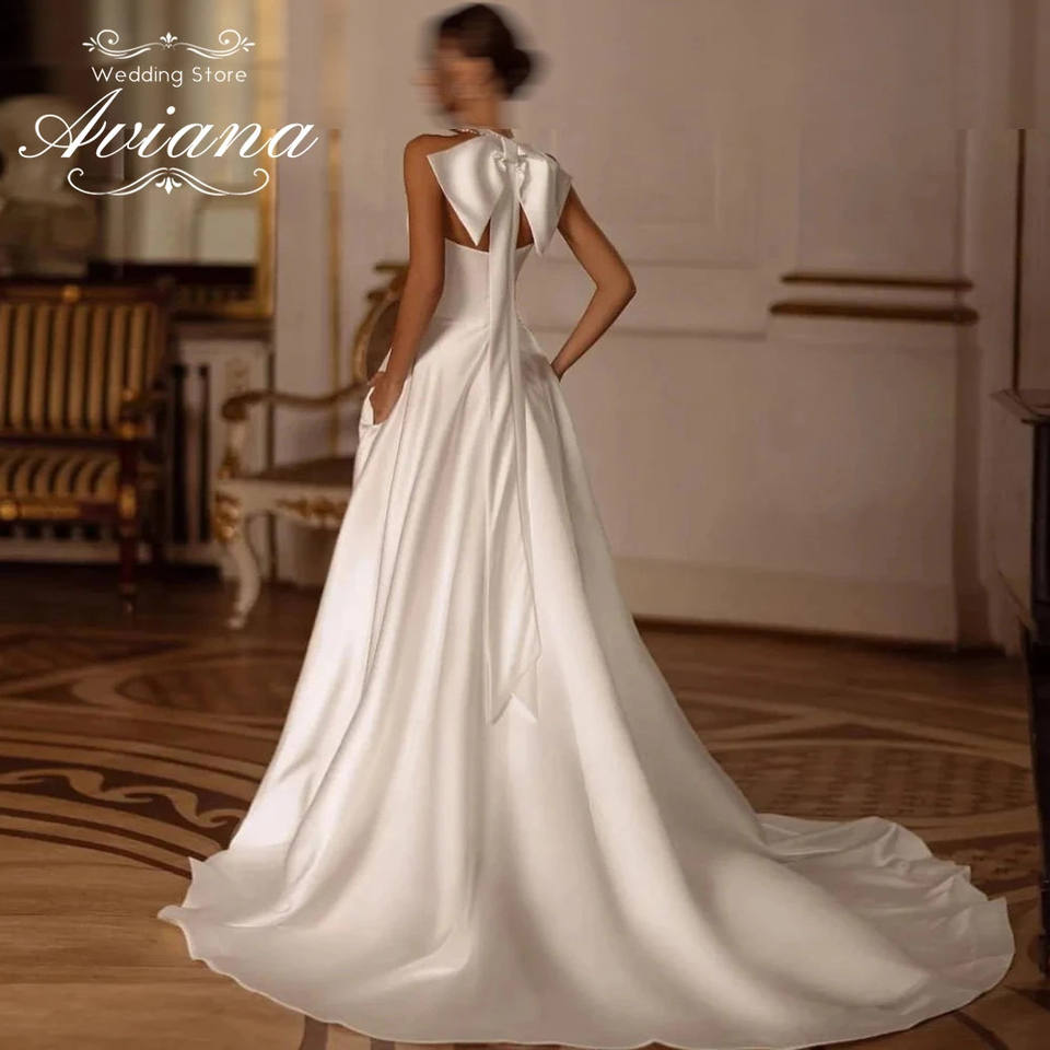 ชุดแต่งงานแขนกุดประดับไข่มุกหรูหราปรับแต่งตามอารมณ์