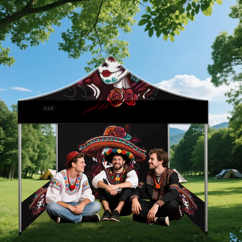 เต็นท์กันแดดพับได้ขนาด 3x3 เมตร ลายพิมพ์ความร้อนตามสั่ง โครงอะลูมิเนียมอัลลอยด์ ผ้าโพลีเอสเตอร์ 300D ติดตั้งง่าย พกพาสะดวก