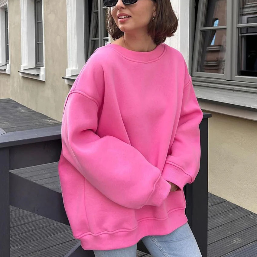 เสื้อฮู้ดดี้ผู้หญิงแบบหนาพิเศษ ปักลายสำหรับฤดูใบไม้ร่วง ผ้าโพลีเอสเตอร์/คอตตอนฟลีซ ป้องกันการเป็นขุย แขนยาว สีพื้น สวมใส่สบายๆ